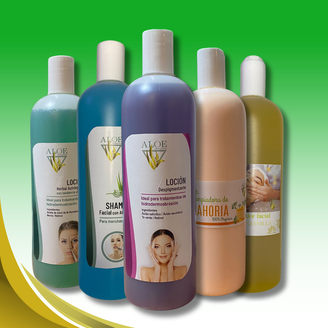 Productos de limpieza facial, shampoo´s, aceites para masajes, mascarillas, etc.